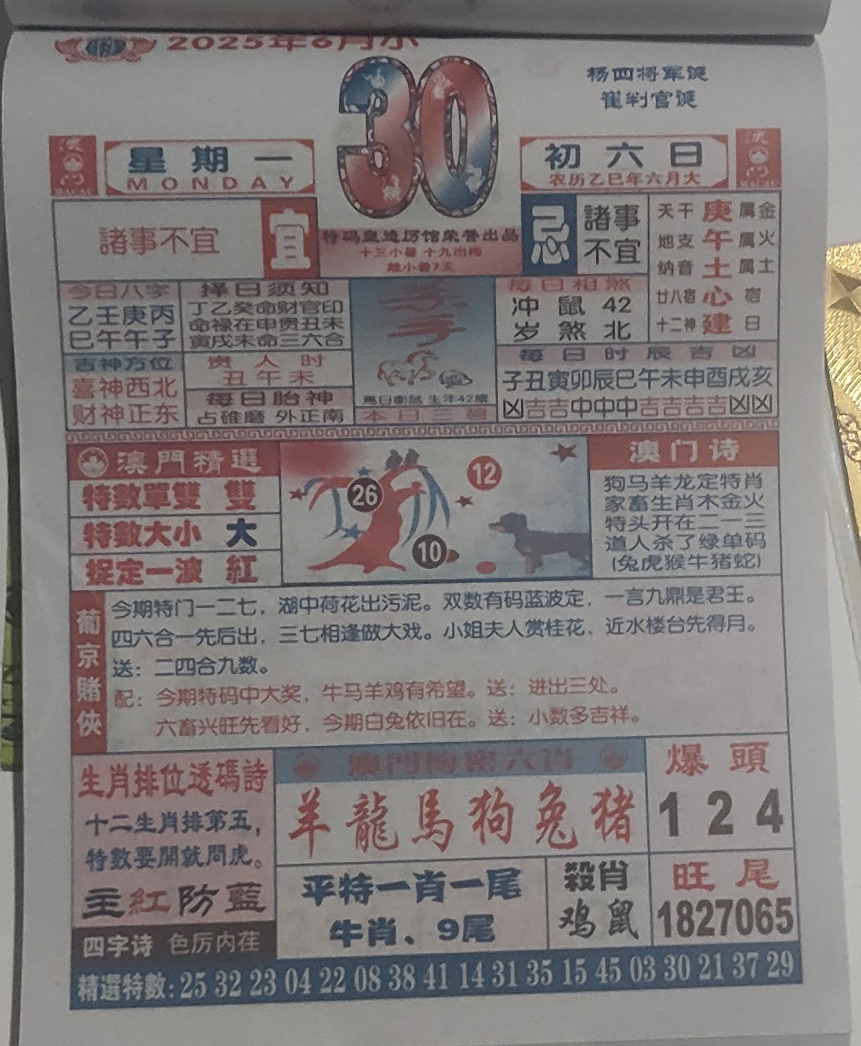 2025全年日歷港澳鐵算盤老黃歷濟公特中一夜富生肖賀卡通禮品勝版