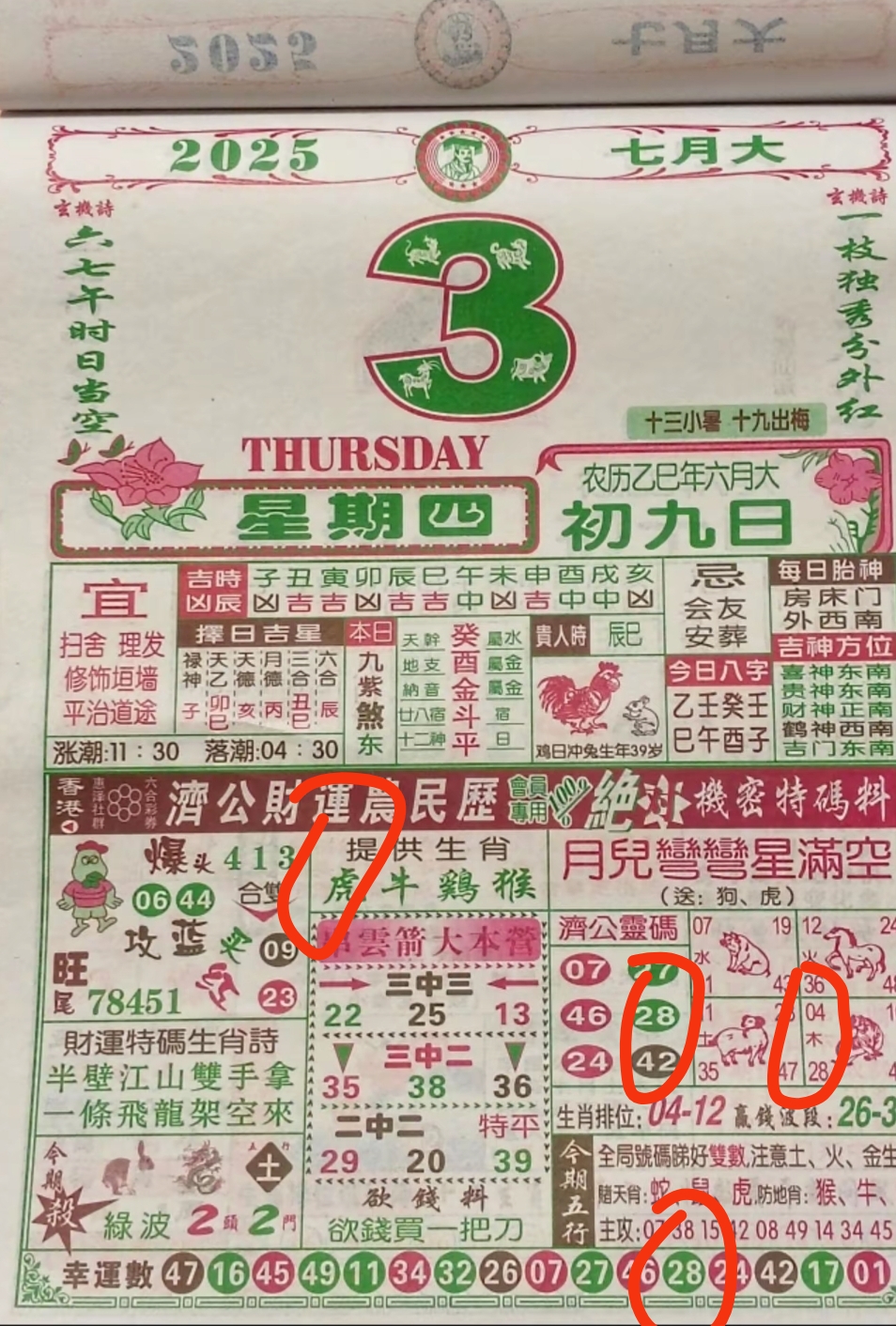 2025全年日歷港澳鐵算盤老黃歷濟公特中一夜富生肖賀卡通禮品勝版