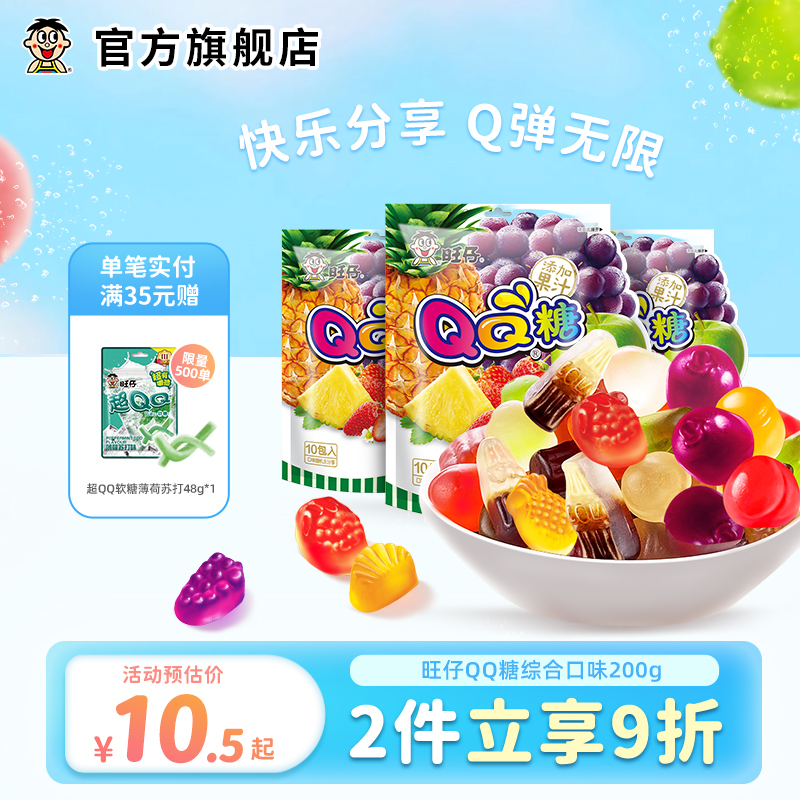 旺旺旺仔官方糖果旗艦店QQ軟糖果綜合多口味兒童休閑零食200g*3包