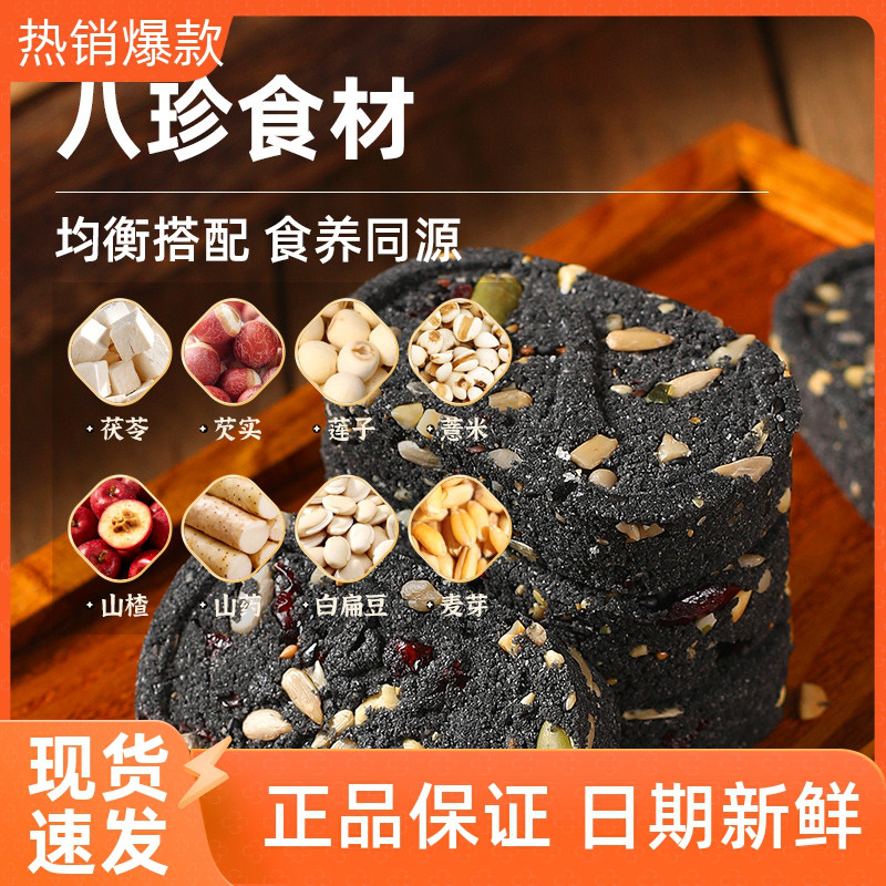 【優選】五黑堅果八珍糕下午茶點心黑芝麻茯苓糕點早餐代餐休sd