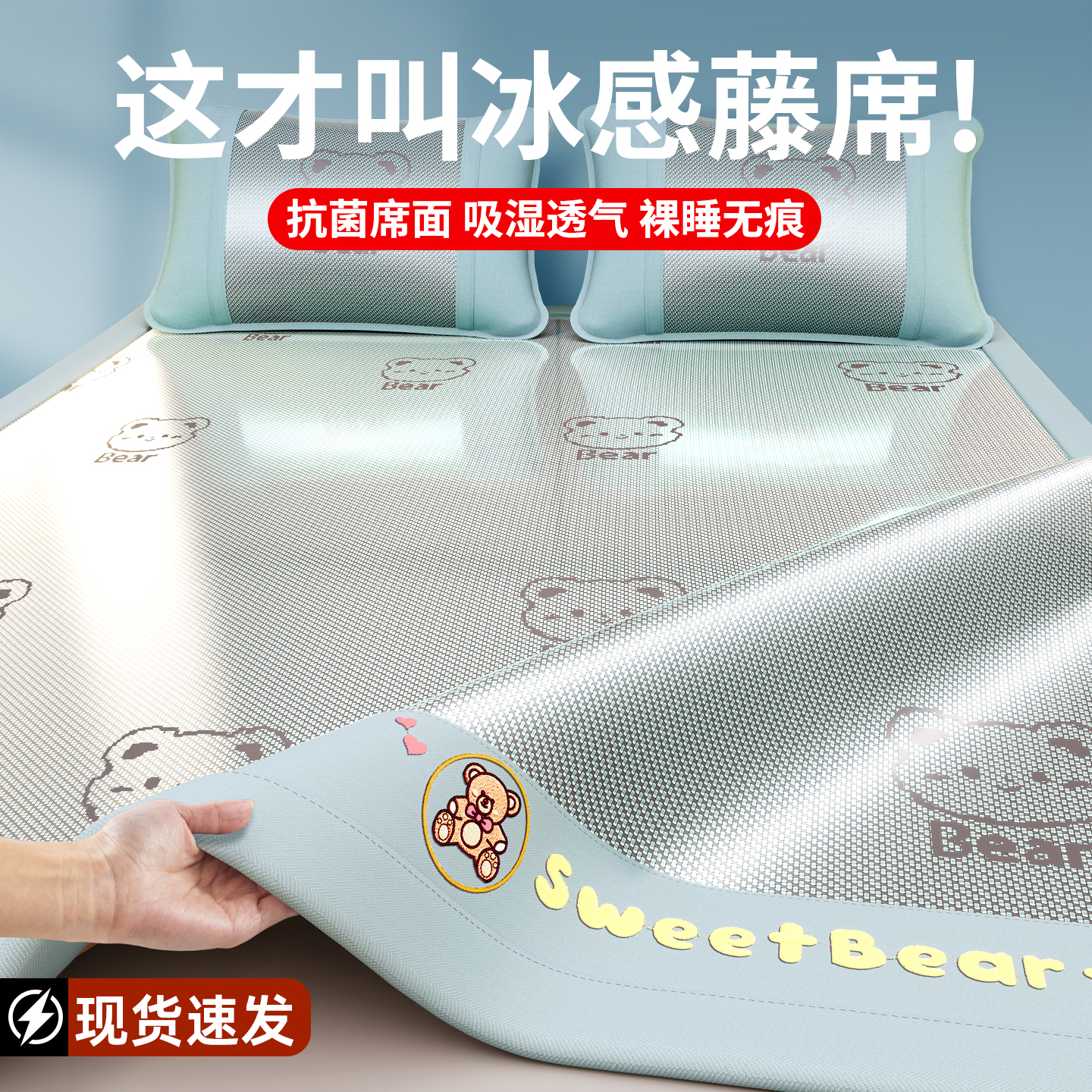 夏天冰絲涼席2025新款藤席子夏季可機洗竹席草席軟席床笠a類母嬰
