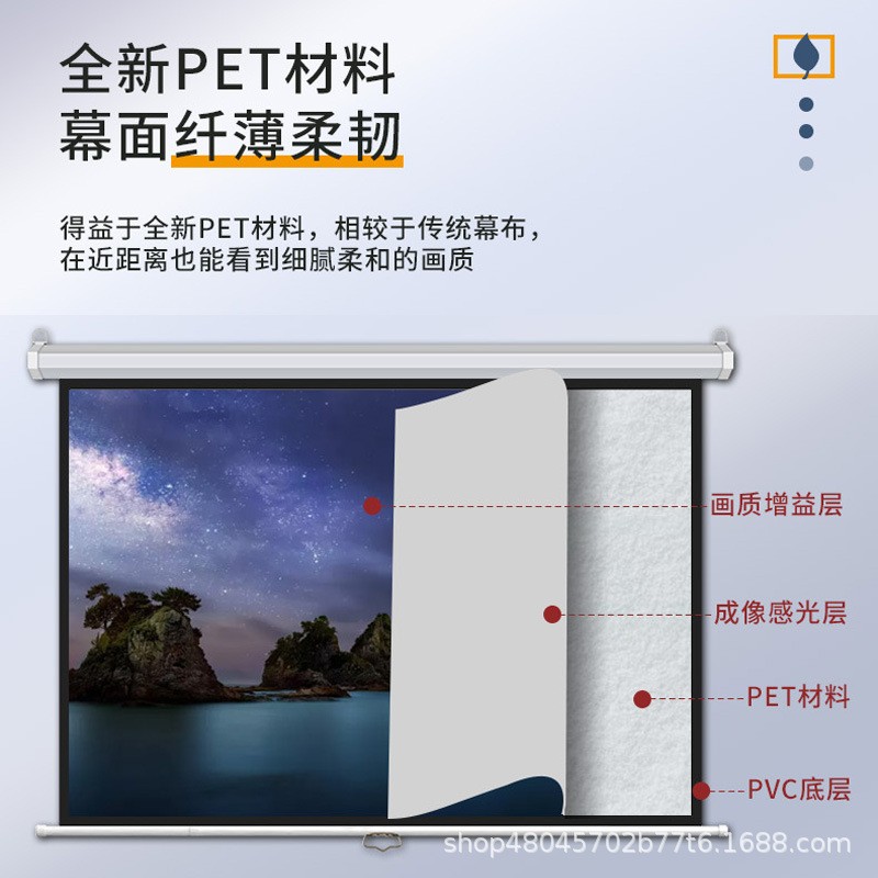 手拉幕布投影家用手動升降無需電動投影儀白幕背景墻客廳臥室壁掛