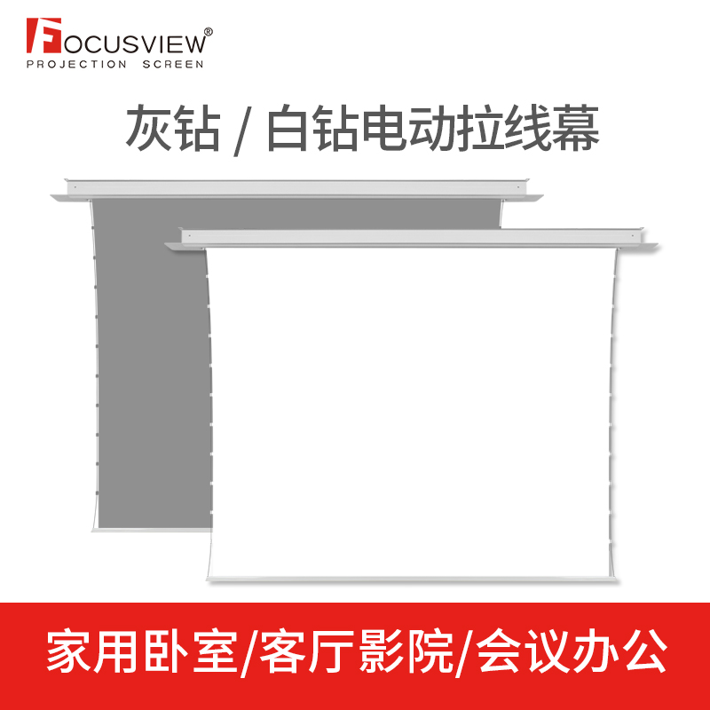 焦點屏幕 白鉆/灰鉆電動拉線幕隱藏天花板電動拉線幕白軟幕家庭影院會議室辦公