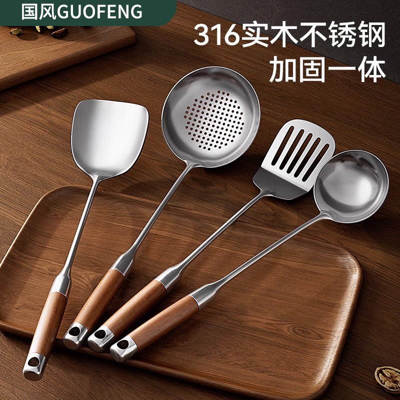 胡桃木不銹鋼鏟子炒菜家用加厚蘑菇鏟貴州炒勺鍋鏟勺子一體二合一