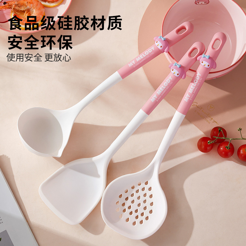 三麗鷗硅膠鍋鏟子不粘鍋專用炒菜食品級耐高溫湯勺漏勺廚具套裝