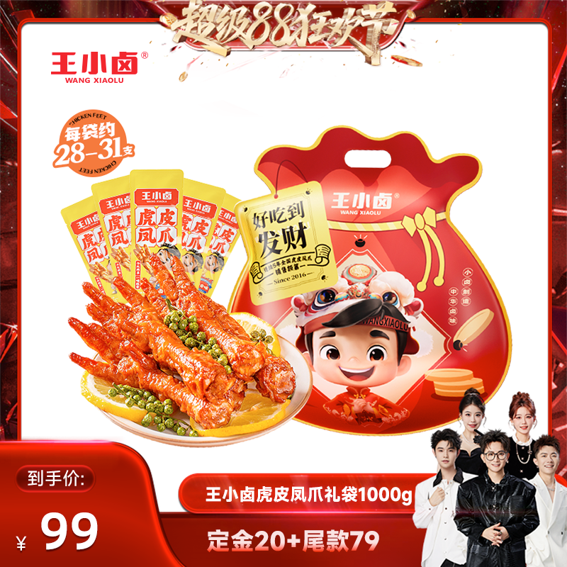 【香菇超級88狂歡節】王小鹵禮袋福袋1kg虎皮鳳爪雞爪大禮包-y