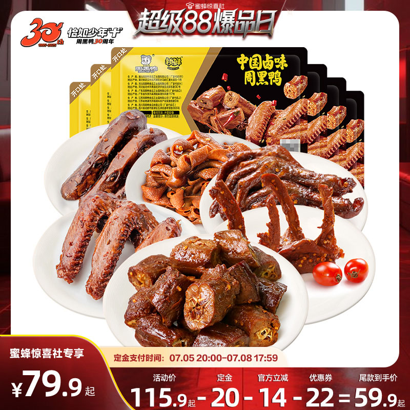 【超級88爆品日】周黑鴨鎖鮮鴨脖鎖骨翅鴨掌鴨腸鴨頭 5/6盒套餐