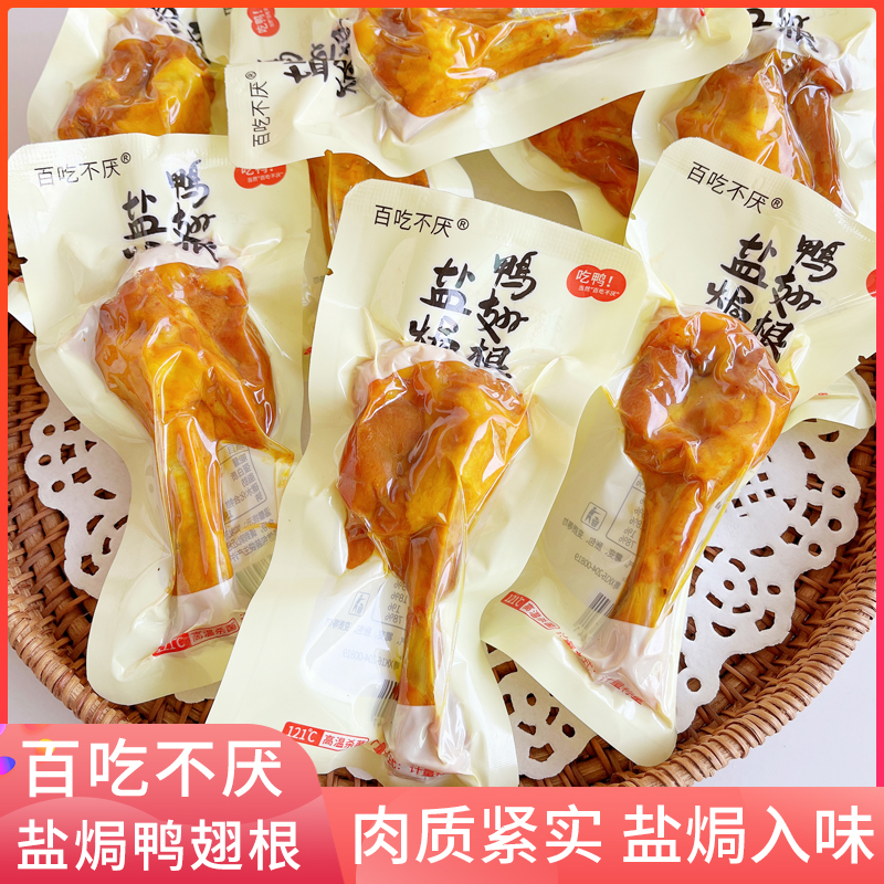 百吃不厭鹽焗鴨翅根真空包裝開袋即食鴨肉零食學生夜宵充饑熟食品