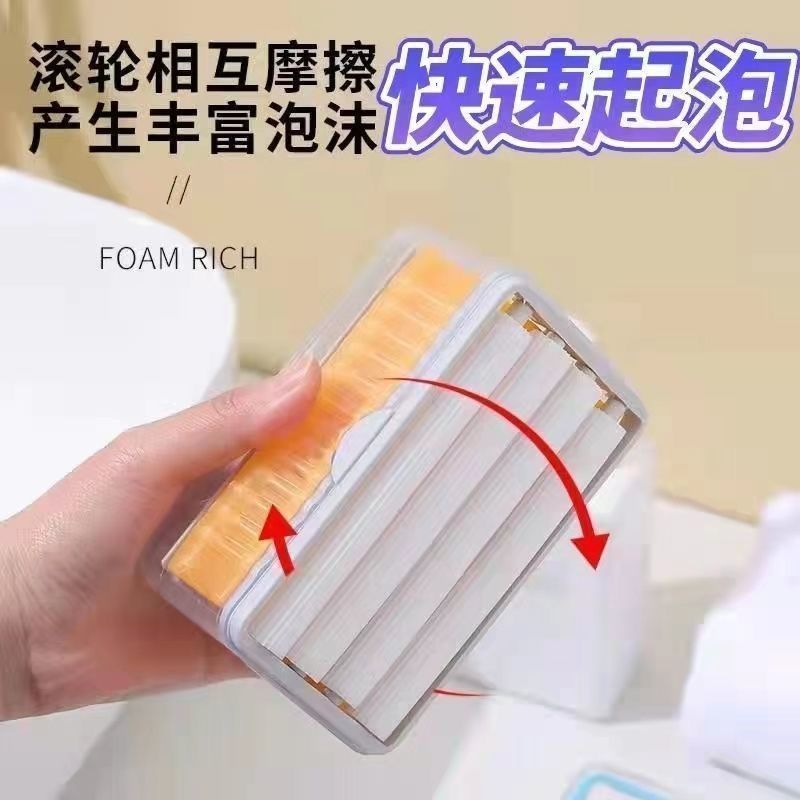 免搓洗手搓香皂盒創意多功能瀝水收納盒家用滾輪式自動起泡肥皂盒