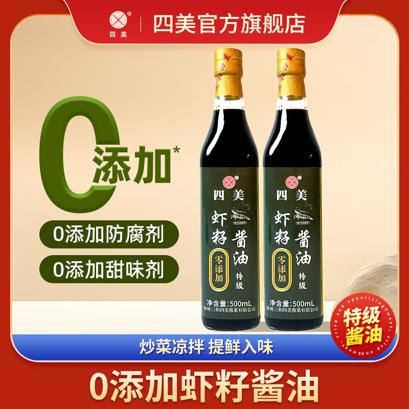 四美零添加蝦籽醬油特級醬油炒菜拌面餛飩蝦子釀造醬油調味料生抽