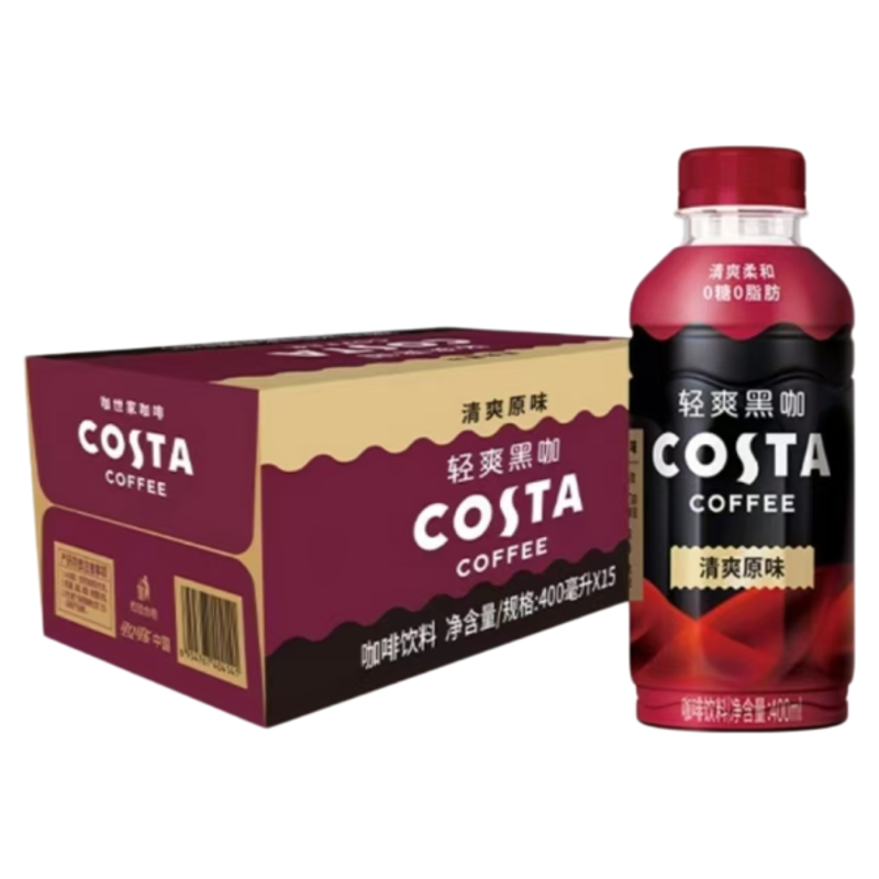 咖世家咖啡輕爽黑咖清爽原味400ml*15瓶裝整箱0糖0脂肪咖啡飲料