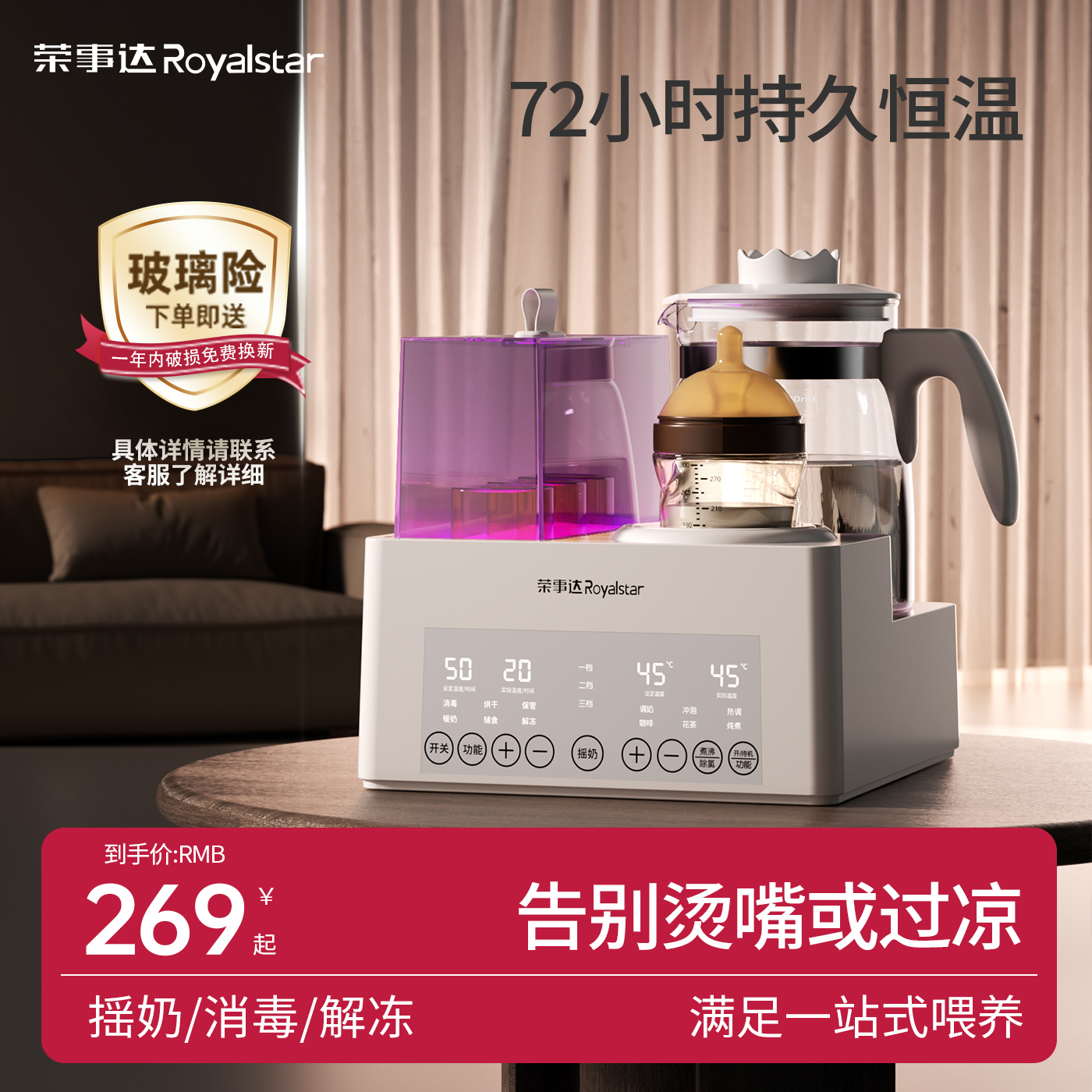 榮事達恒溫水壺奶瓶消毒搖奶器三合一溫奶器加熱母乳全玻璃熱奶器