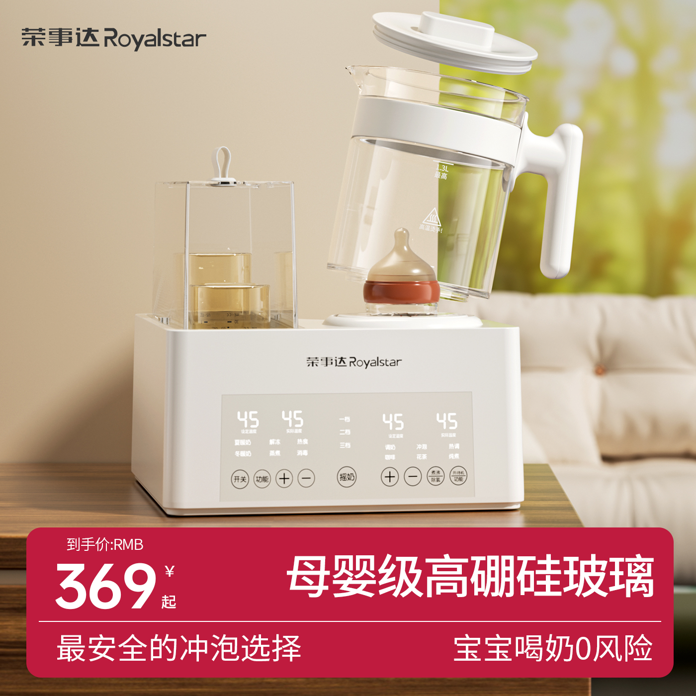 榮事達熱奶器恒溫壺奶瓶消毒柜搖奶三合一全玻璃暖奶保溫加熱母乳