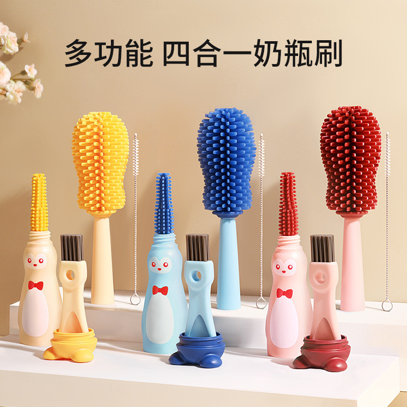 硅膠奶瓶刷四件套水杯清理多功能刷子組合嬰兒奶嘴刷瓶口刷吸管刷
