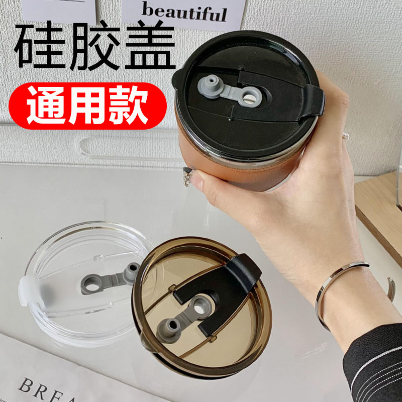 ins風杯蓋可插吸管密封硅膠蓋防漏防塵透明果汁蓋子通用水杯配件