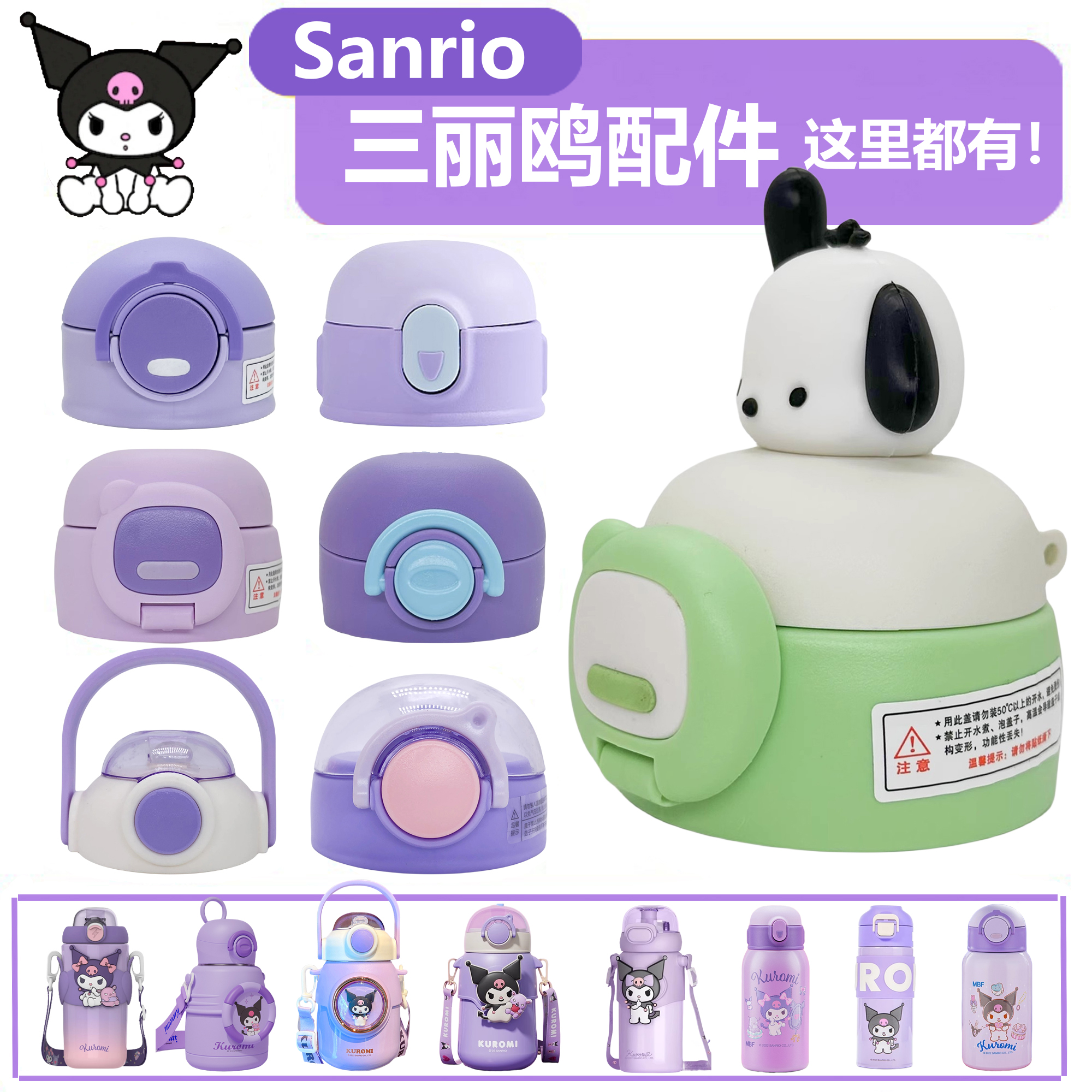 三麗鷗庫洛米兒童保溫杯杯蓋蓋子配件吸嘴吸管防漏帕恰狗凱蒂貓