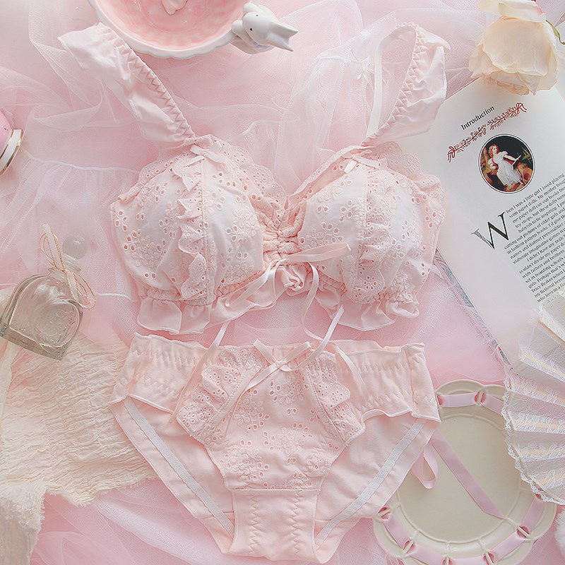日系花瓣a少女心甜美公主可愛內衣薄款小胸bra無鋼圈純棉文胸套裝