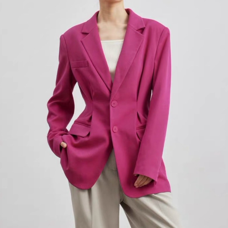 230春秋新款百搭純色減齡兩??蹠r尚百搭西裝外套