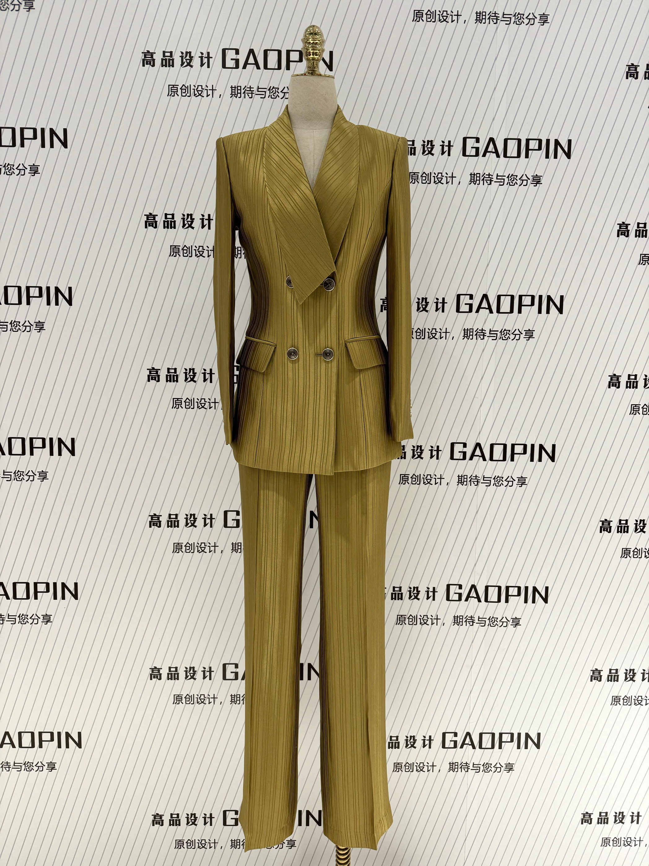 2025春夏季金黃色真絲醋酸西裝套裝女垂感修身小眾西服主持人職業