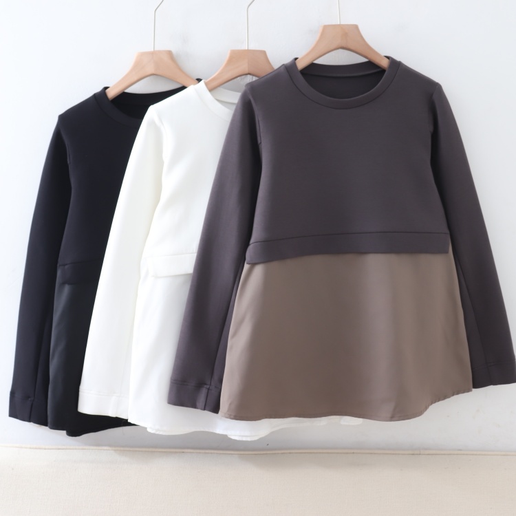 B010108日單新款客供料簡潔圓領套頭寬松顯瘦女休閑純色拼接衛衣