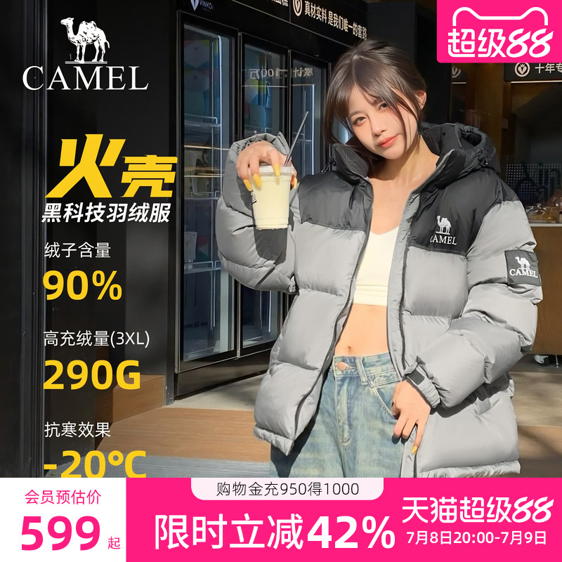 駱駝羽絨服女2025冬季新款熱反射升溫保暖加厚連帽面包服短款外套