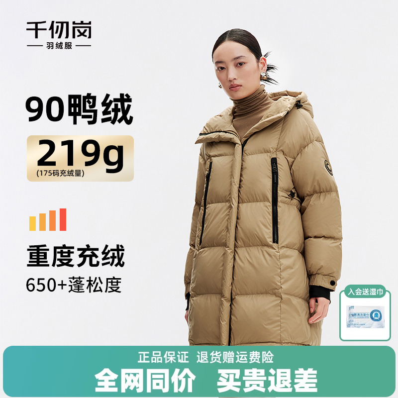 千仞崗冬季女士連帽中長款加厚運動風羽絨服戶外防風外套