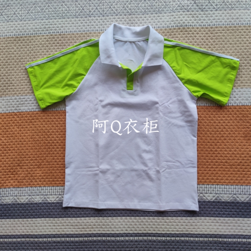 白色校服短袖藏藍插肩袖袖上兩白條藏藍領男女通用班服T恤POLO衫