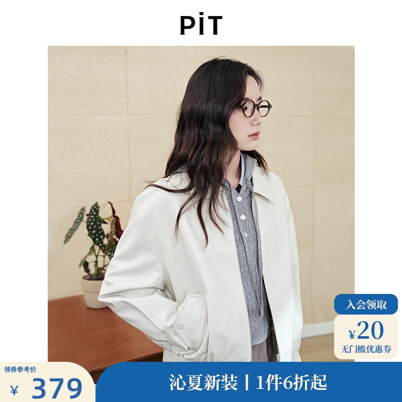 PIT復古寬松翻領PU防皮夾克短外套女秋裝新款休閑小個子外套