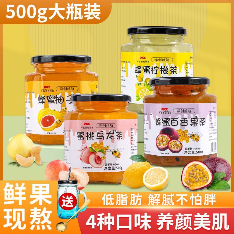 百香果蜂蜜檸檬茶山楂蘋果茶柚子茶水果茶沖飲醬果醬泡水喝的東西