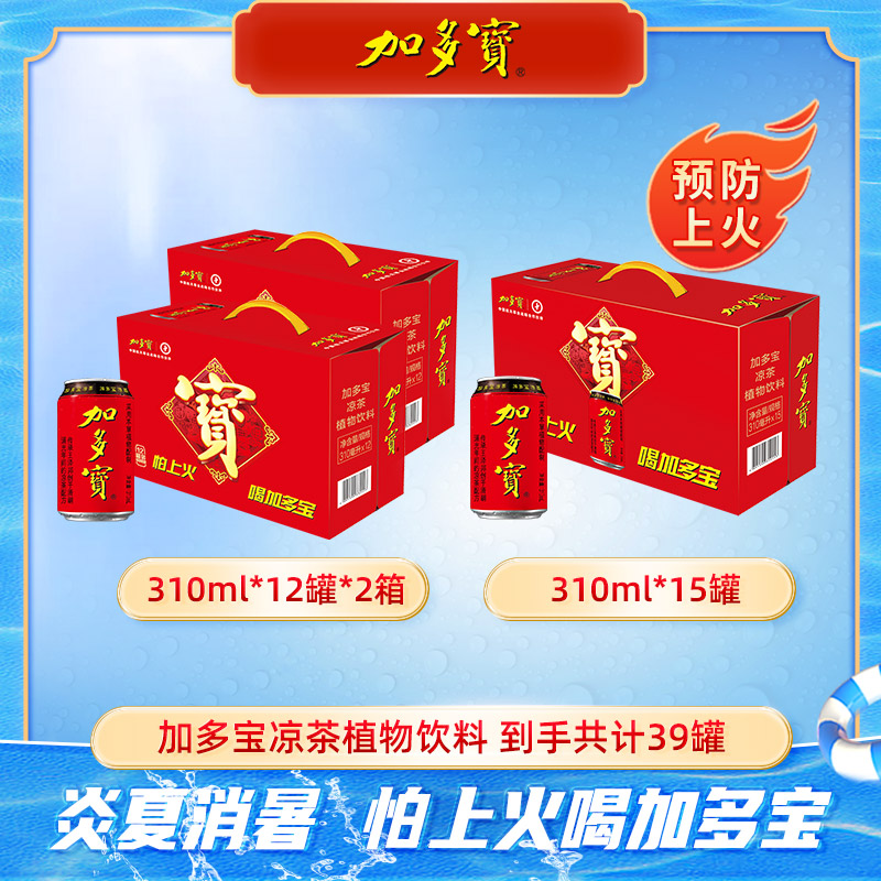 【自播】加多寶涼茶310ml*12罐*2箱+310ml*15罐天然植物飲料XM