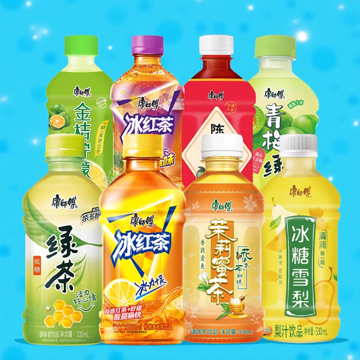 康師傅冰紅茶330ml*12瓶酸梅湯綠茶茉莉花茶小瓶裝飲料混合整箱
