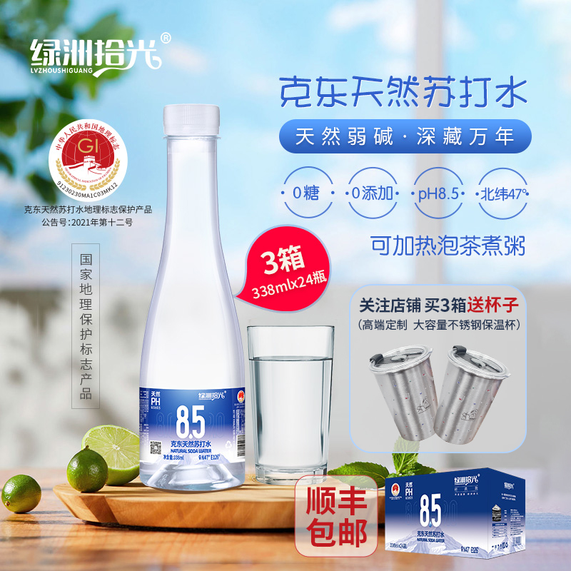 綠洲拾光克東天然蘇打水弱堿無糖低氘水338ml*24瓶 拍3箱送杯子