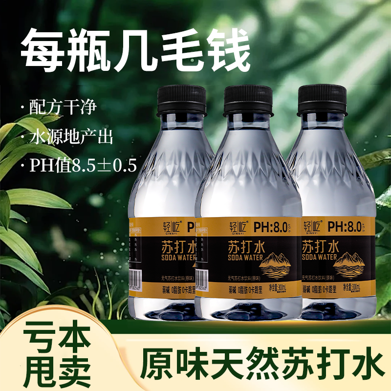 新品促銷蘇打水12瓶*300ml整箱無糖弱堿性0脂0卡礦泉水輕量蘇打飲