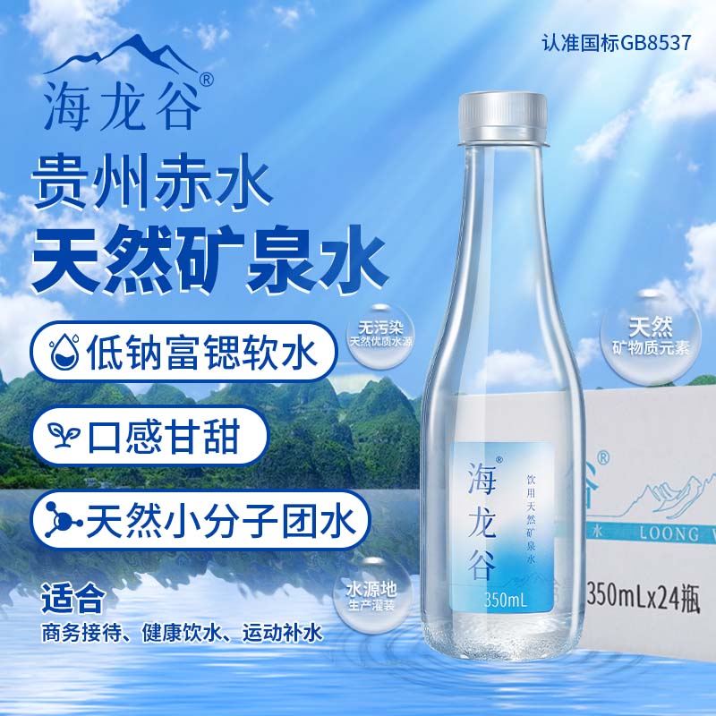 海龍谷含鍶弱堿性天然礦泉水家用小瓶飲用水整箱350ml*24瓶
