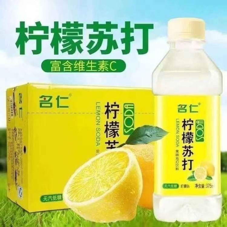 名仁蘇打水檸檬味低糖375ml*12/24瓶整箱原味水蜜桃混合果味飲料