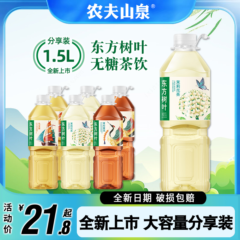 農夫山泉東方樹葉1500ml茉莉花茶烏龍茶無糖茶飲料整箱官方正品