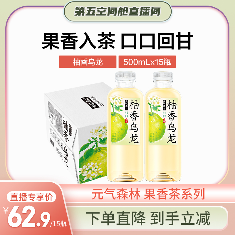 【第五空間艙】元氣森林冷泡茶柚香烏龍飲料無糖茶飲料500mLX15瓶