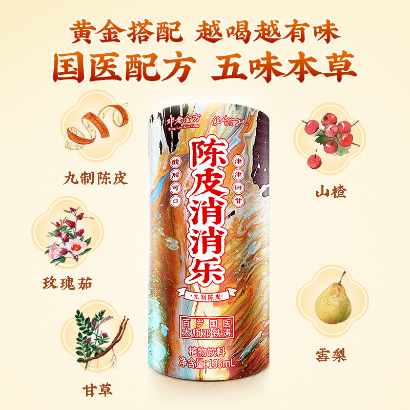 鄧老涼茶鈴戈陳皮消消樂戶外出游飲品聚餐風味飲料195ml*12罐整箱