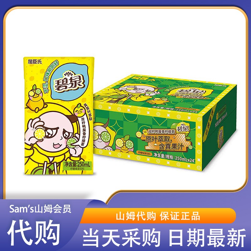 山姆代購 屈臣氏碧泉雙檸鴨屎香檸檬茶250ml*24盒整箱裝含真果汁