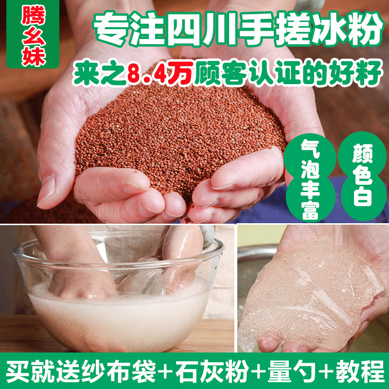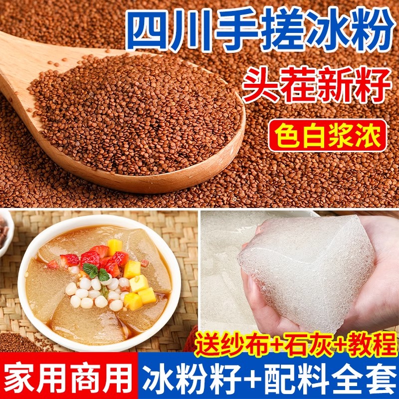 四川手搓冰粉籽商用批發材料免石灰配料全套涼粉冰粉籽官方旗艦店