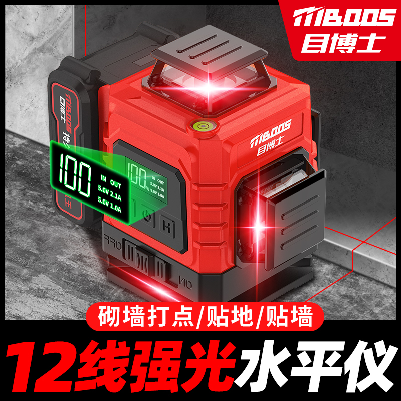 12線水平儀高精度強光細線平水儀室外專用激光貼墻貼地打線紅外線