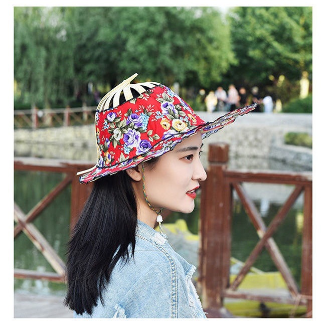 扇子帽子兩用竹扇折疊帽子可以折疊的太陽帽下地干活防曬帽子百搭