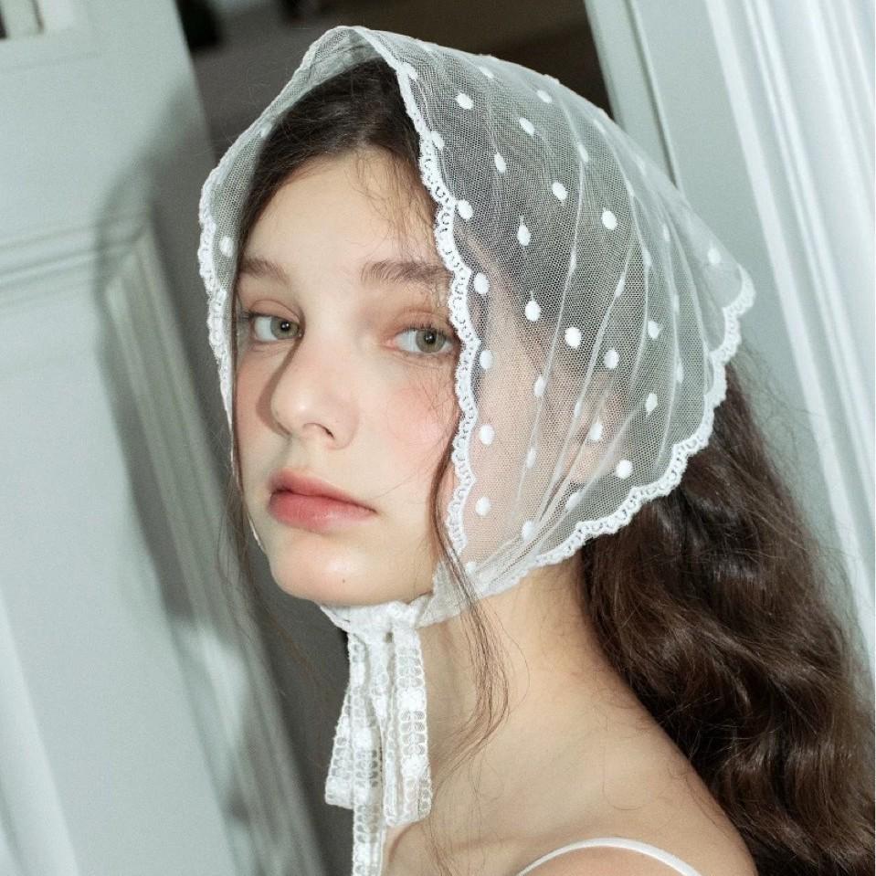 蕾絲三角頭巾女簡約波點百搭包頭法式復古田園風發帶海邊拍照頭飾