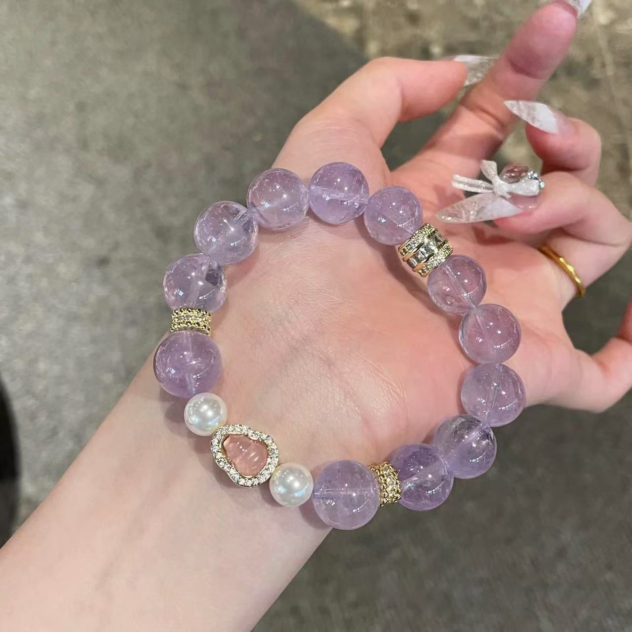 天然紫阿塞水晶手串粉琉璃葫蘆貝珠小眾設計高級感送朋友禮物