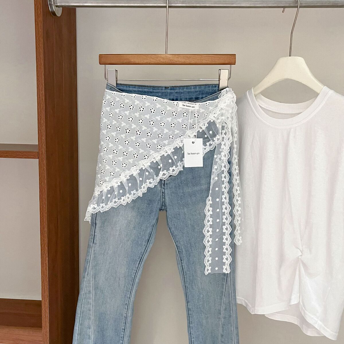 韓版蕾絲花邊網紗屁簾女生設計感時髦疊穿打底半身裙個性系帶紗裙
