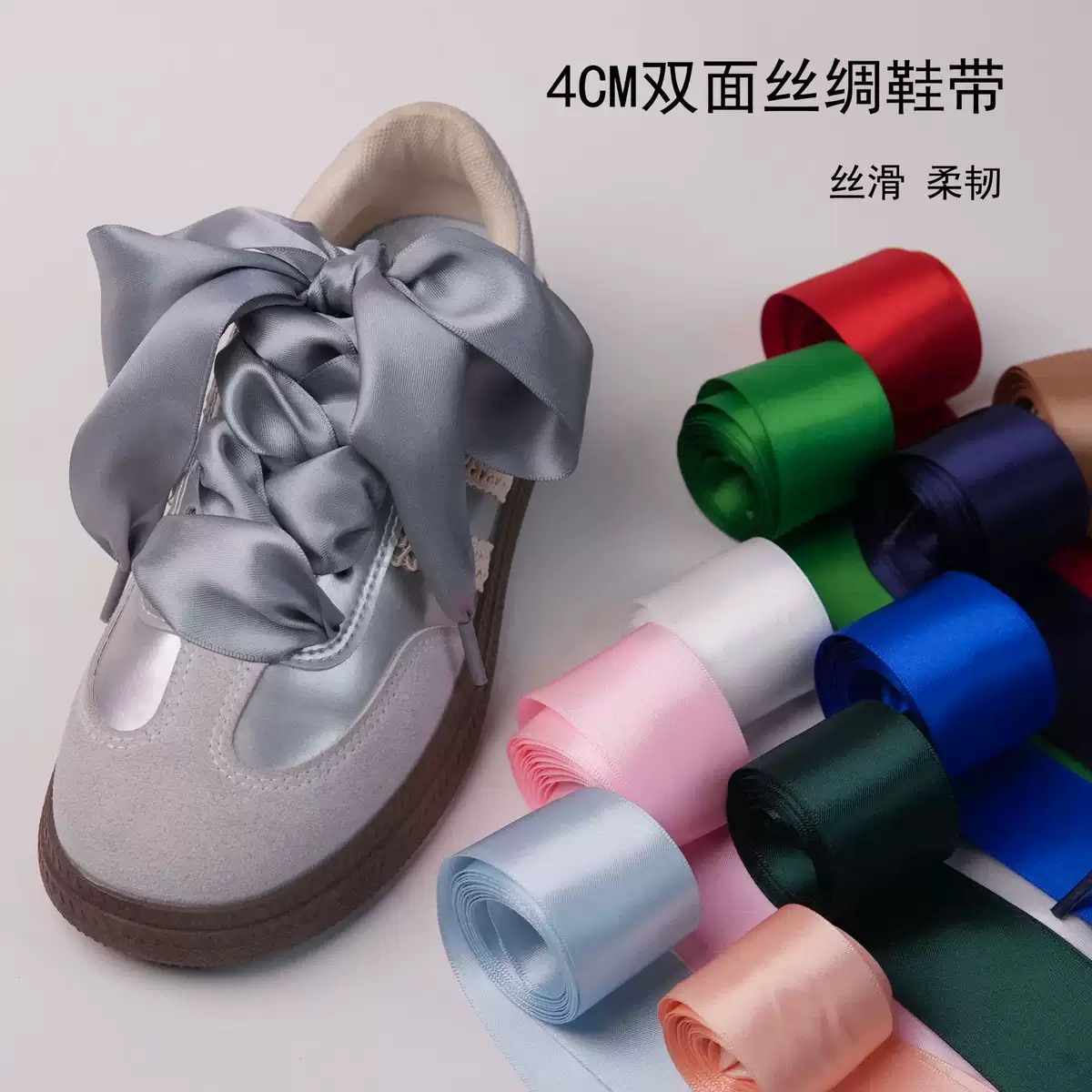 寶婕絲綢鞋帶4CM芭蕾風蝴蝶結鞋帶雙面彩虹綢緞鞋帶緞帶小白鞋鞋