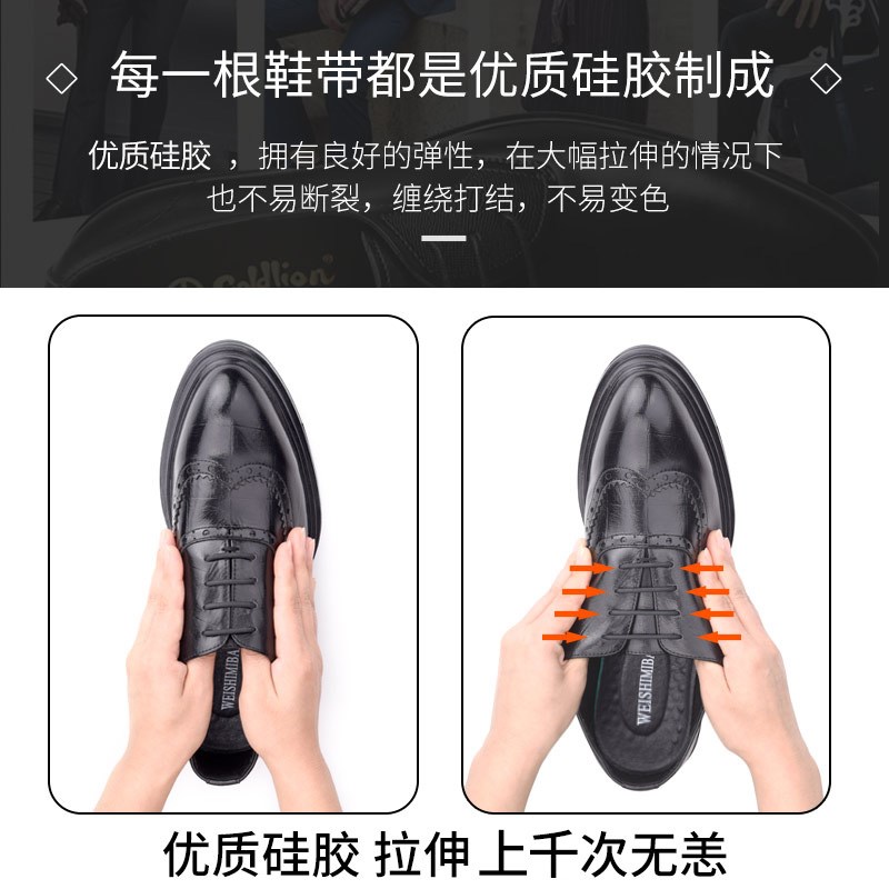 皮鞋鞋帶硅c膠免系免綁懶人細圓男女士商務休閑S棕黑色彈力松緊鞋