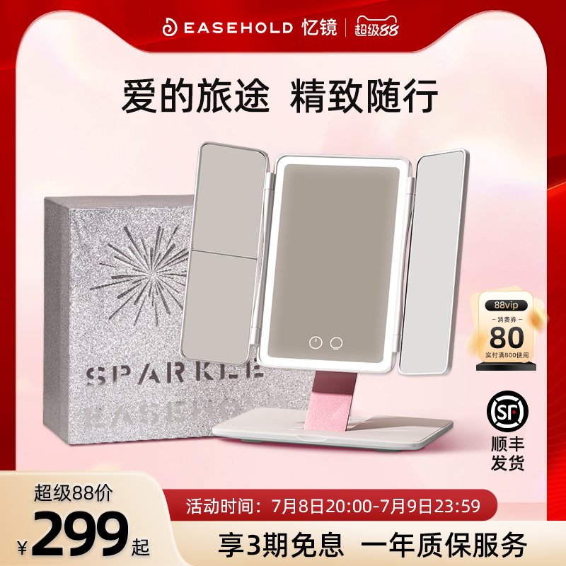 EASEHOLD憶鏡化妝鏡隨身便攜折疊旅行出差帶燈鏡子送女朋友禮物