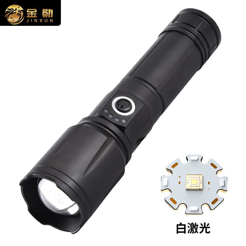 爆款白激光強光手電筒充電戶外超亮大功率手電便捷多功能工作燈定