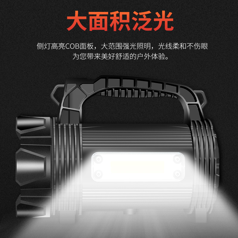跨境強光手電筒遠射超亮戶外多功能探照燈手提式充電燈